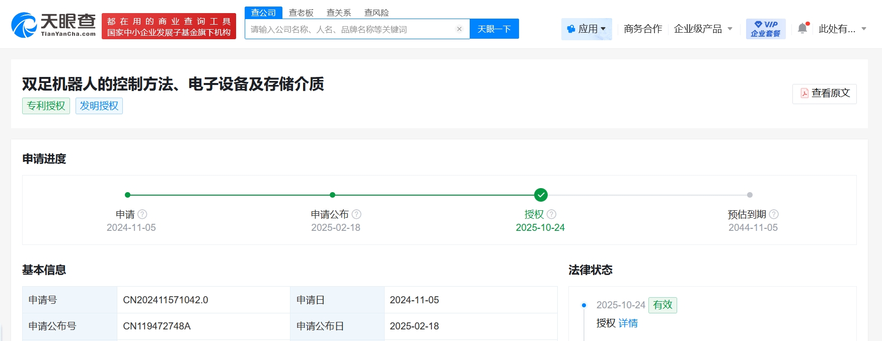 雷达财经讯,天眼查App显示,近日,广州小鹏汽车科技有限公司申请的“双足机器人的控制方法、电子设备及存储介质”专利获授权。